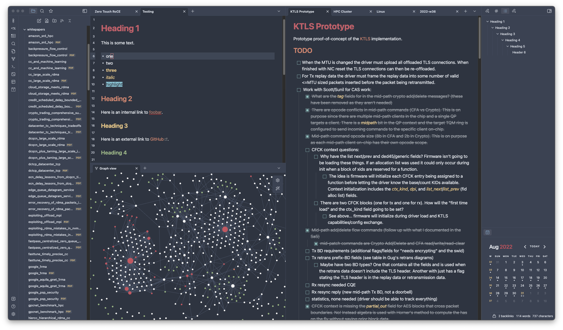 - Markdown Mastery: Obsidian harnesses the simplicity and portability of markdown for note-taking, connecting your thoughts through an intricate web of links. It's ideal for those who appreciate the durability of plain text.